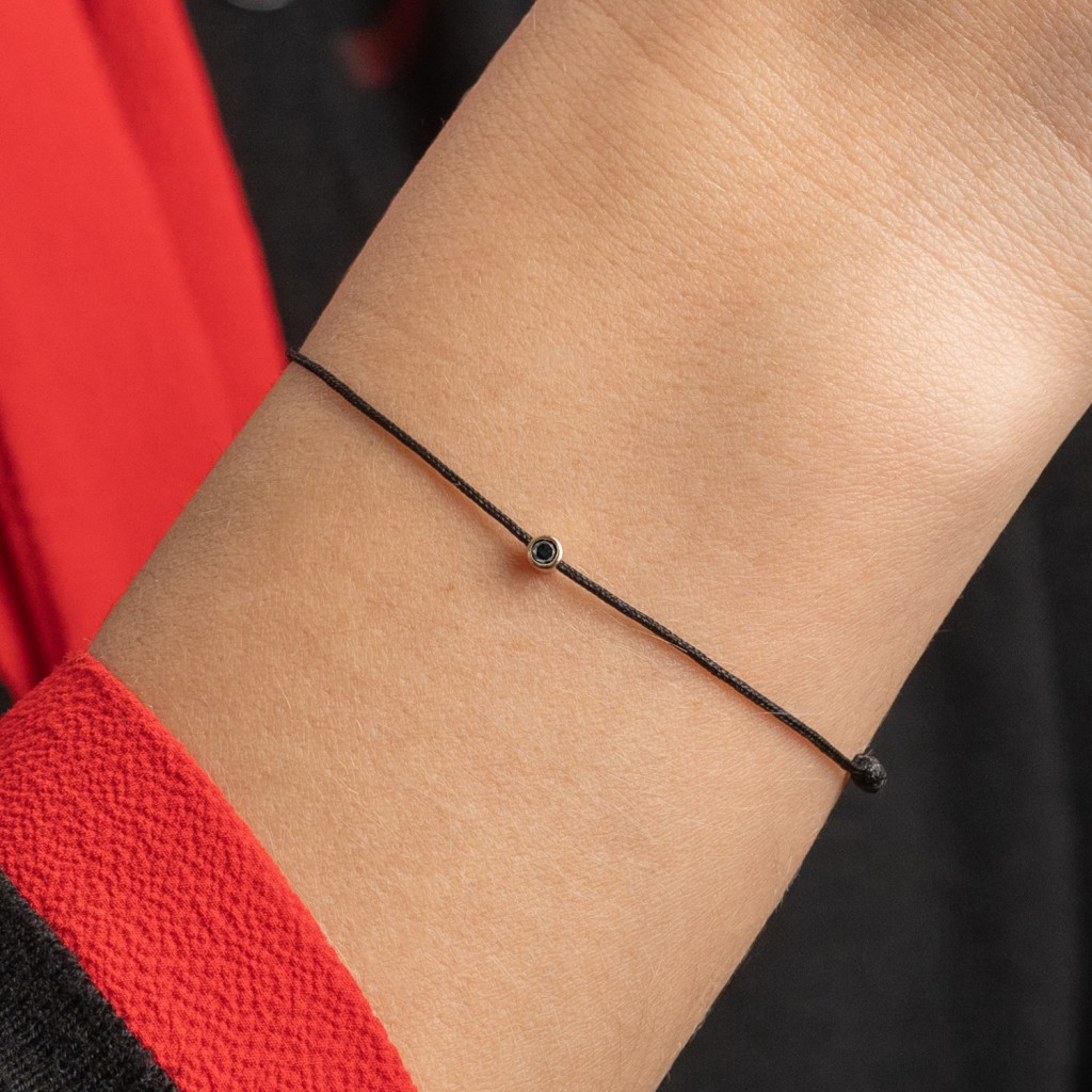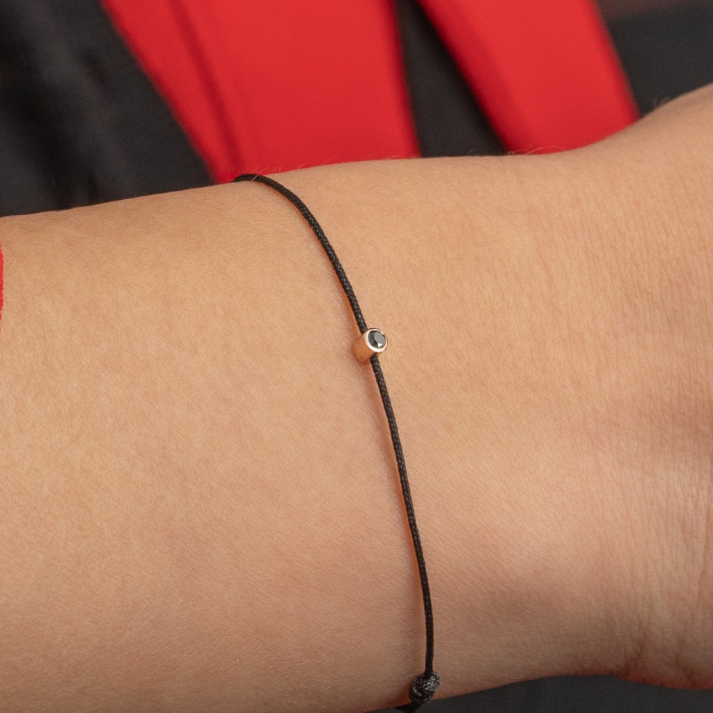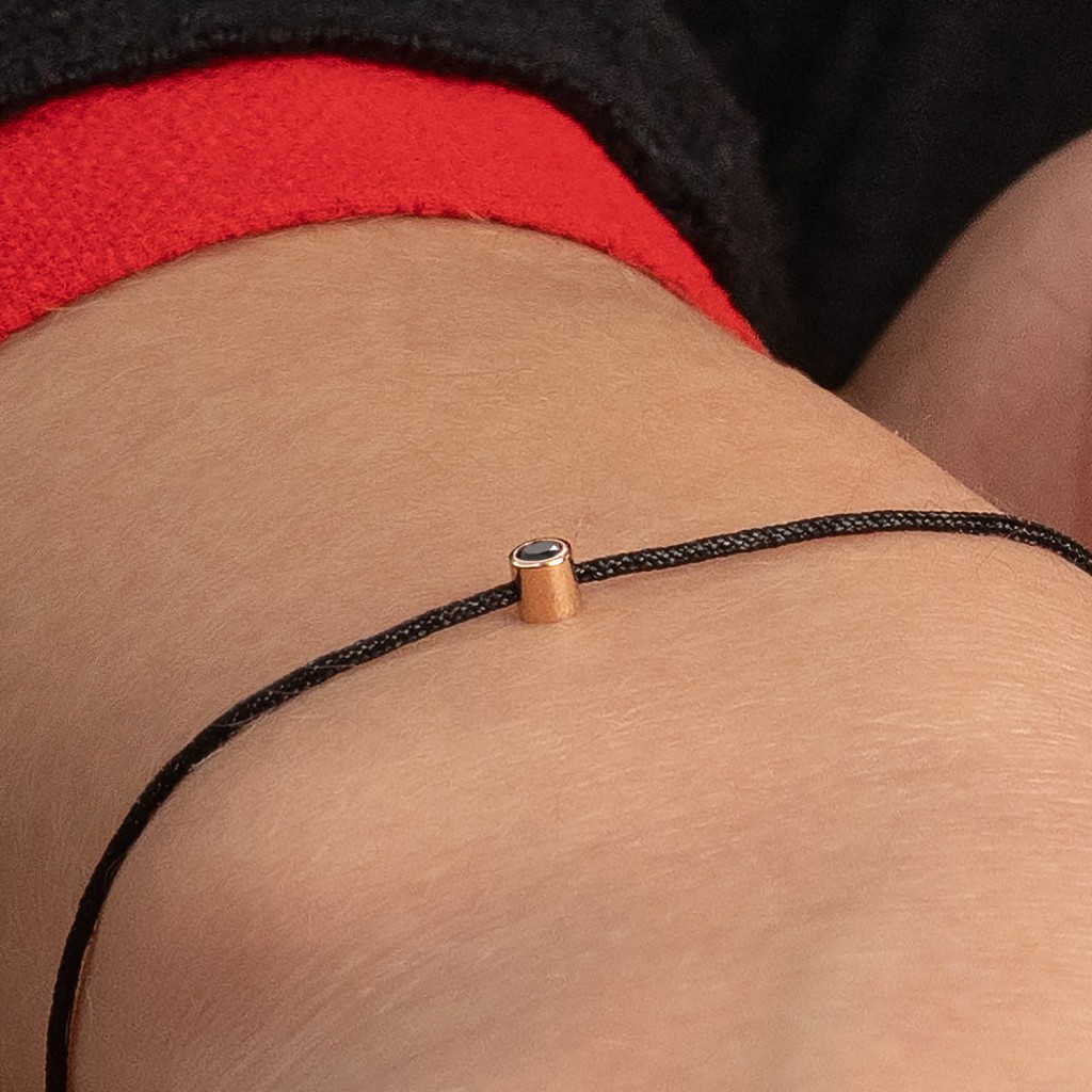Punasest lõngas käevõru kullast ja briljandist ripatsiga 0.03ct