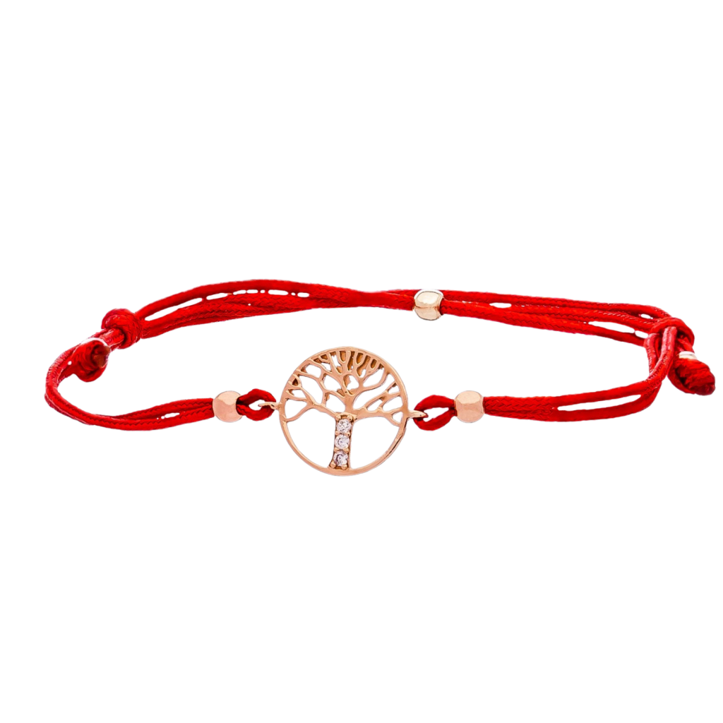 Punasest lõngast käevõru kuldripatsiga "elupuu"