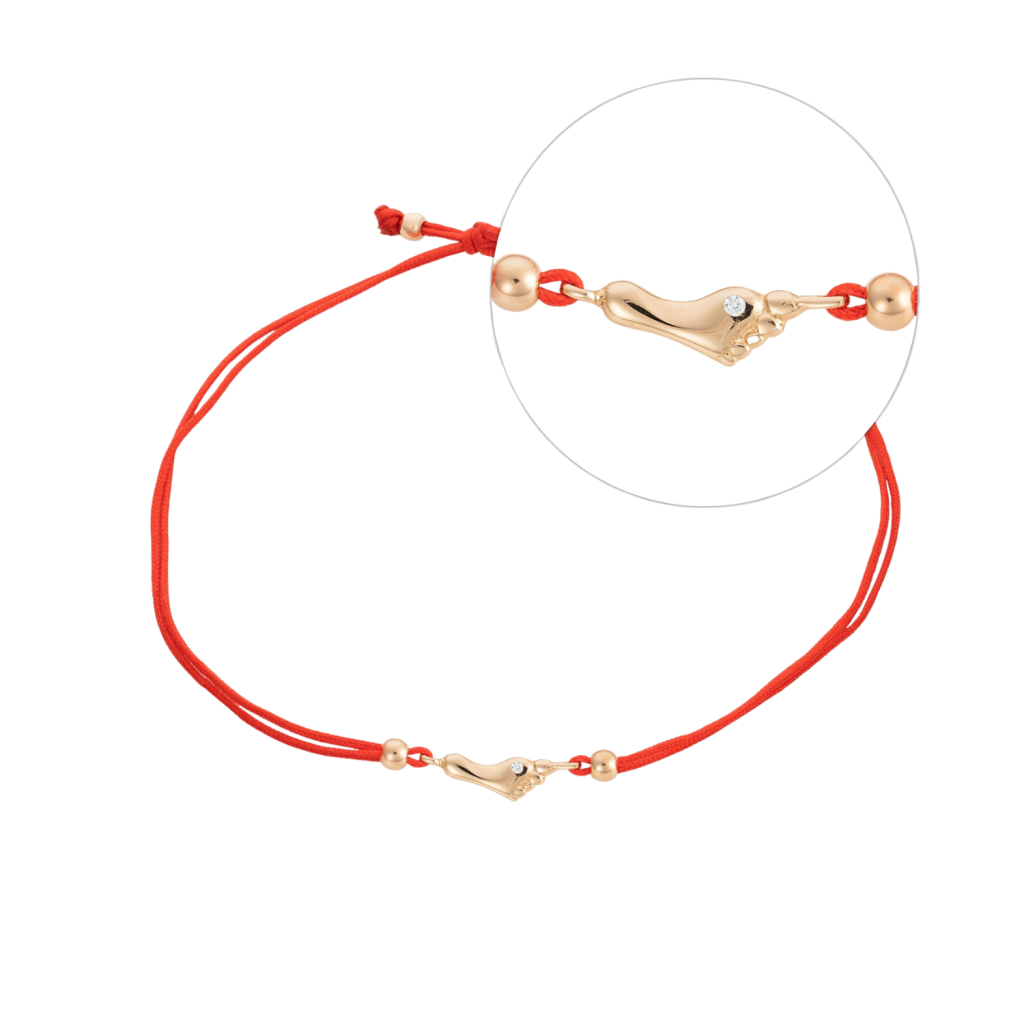 Punasest lõngast käevõru kuldripatsiga "Jälg"