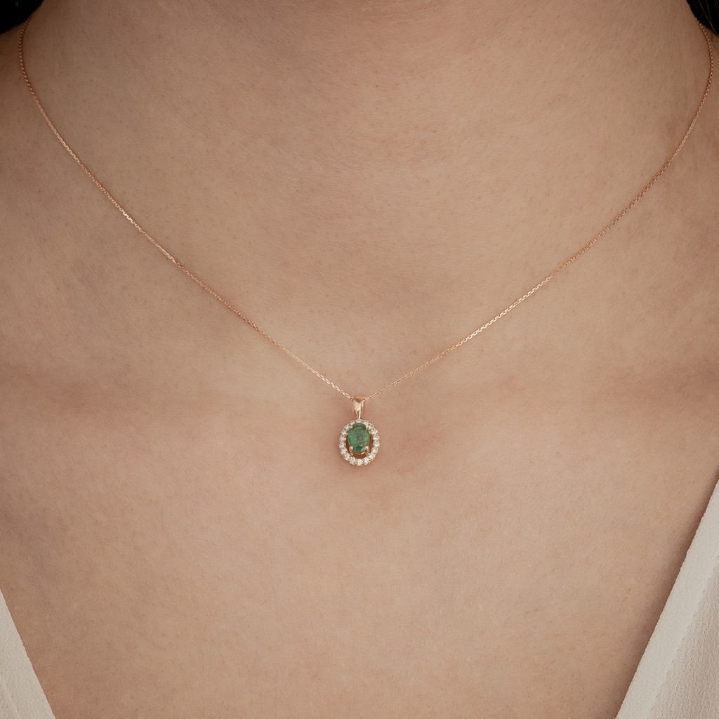 Kuldne kett smaragdi ja teemandi ripatsiga