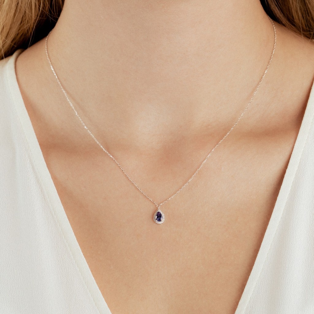 Valgest kullast kett tanzaniidi ja teemantidega ripatsiga