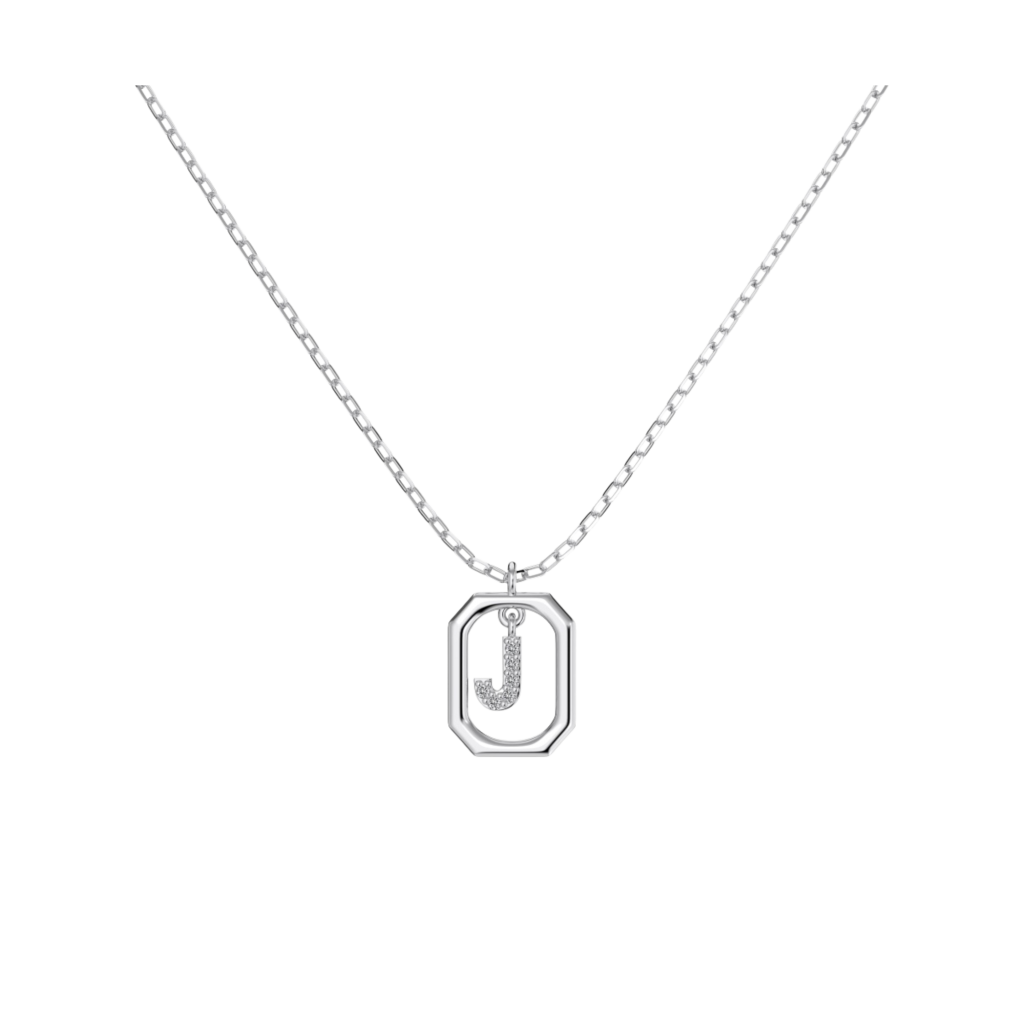Hõbedane kett tsirkooniga ripatsiga "Täht J"
