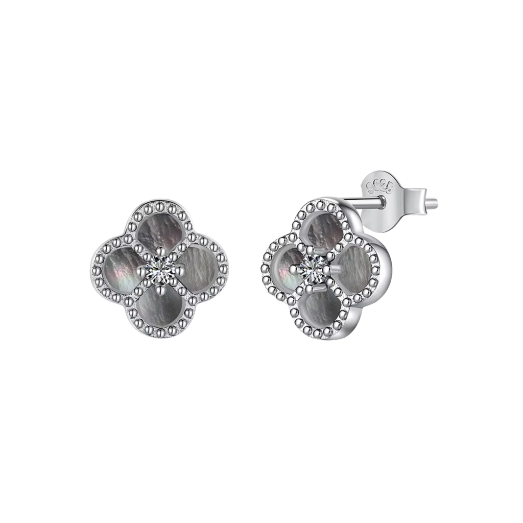 Hõbekõrvarõngad pärlmutri ja tsirkoonidega