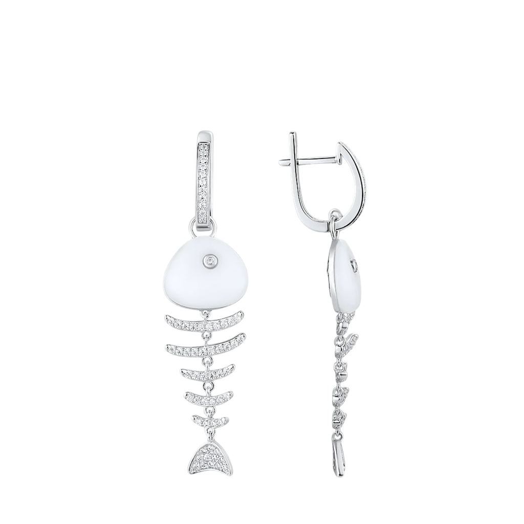 Hõbedast kõrvarõngad tsirkoonide ja keraamikaga