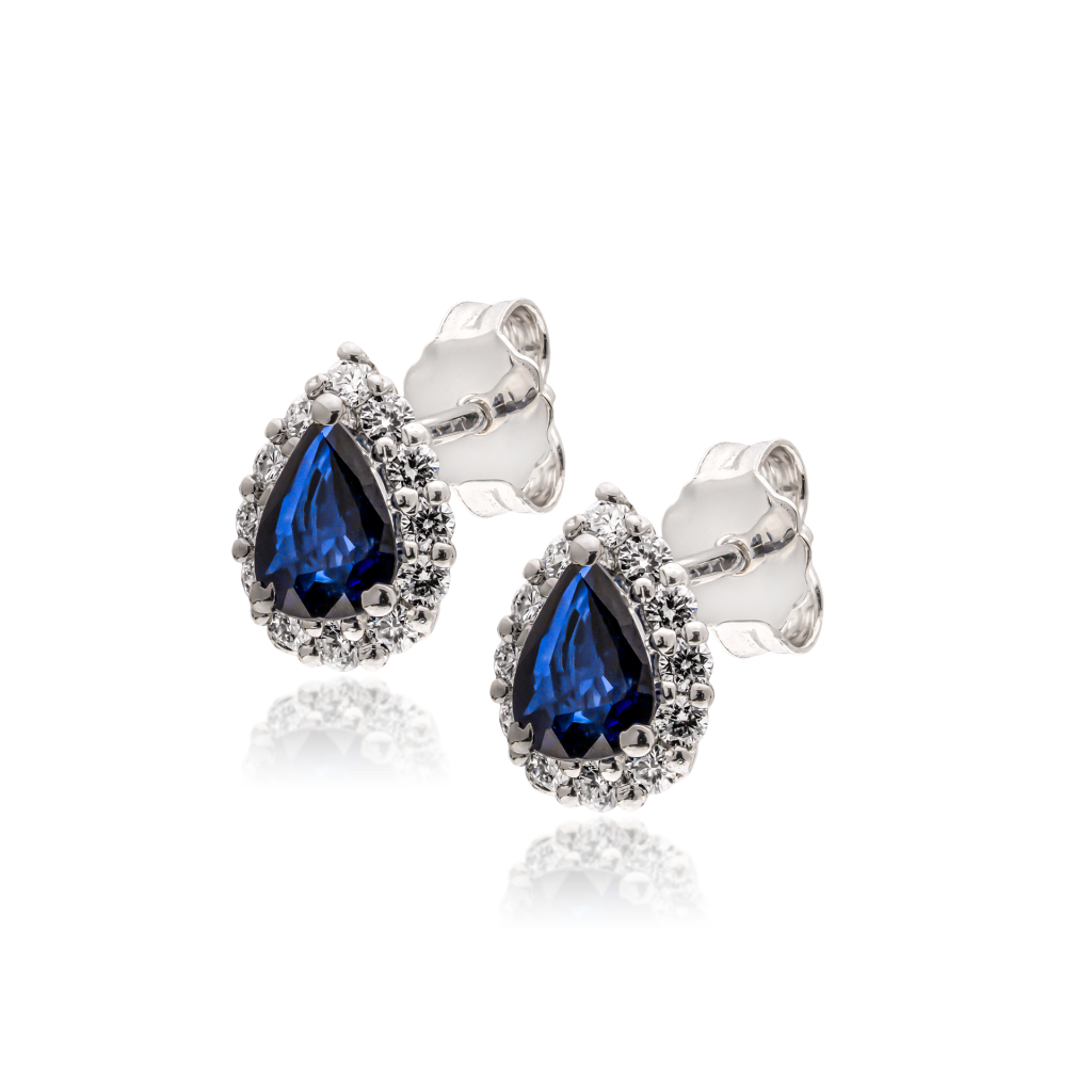 Valgest kullast kõrvarõngad safiiride ja briljantidega