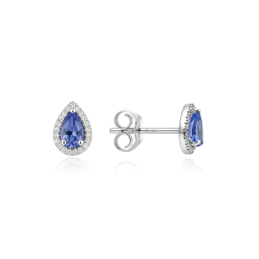 Valgest kullast kõrvarõngad tanzaniidi ja teemantidega