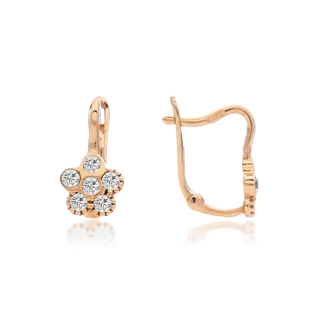 Laste kuldkõrvarõngad tsirkoonidega"Lilled"