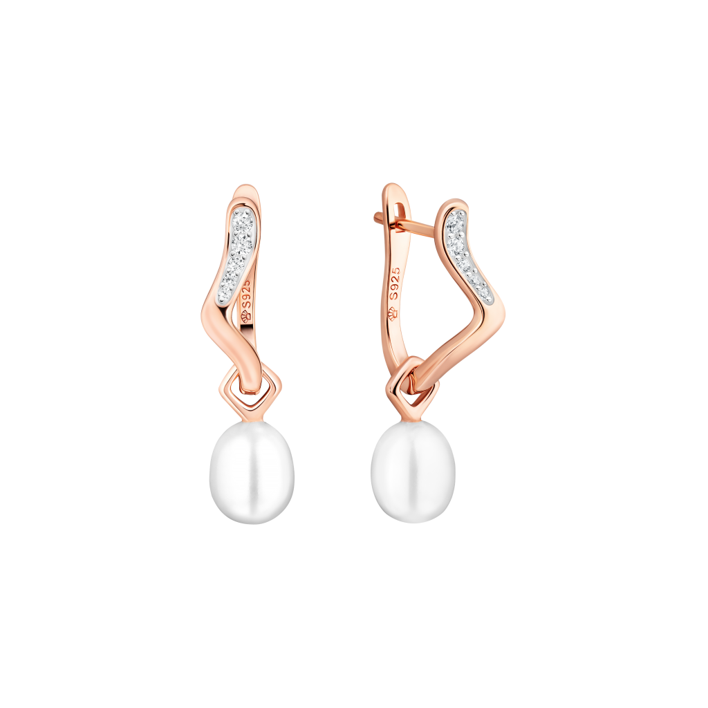 Kullatud Hõbekõrvarõngad pärlite ja tsirkoonidega
