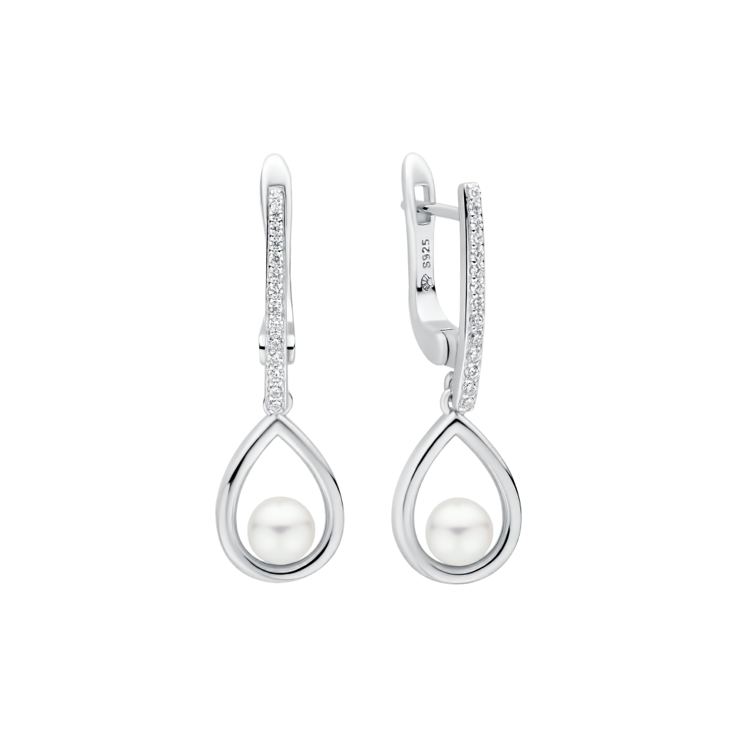 Hõbekõrvarõngad pärlite ja tsirkoonidega