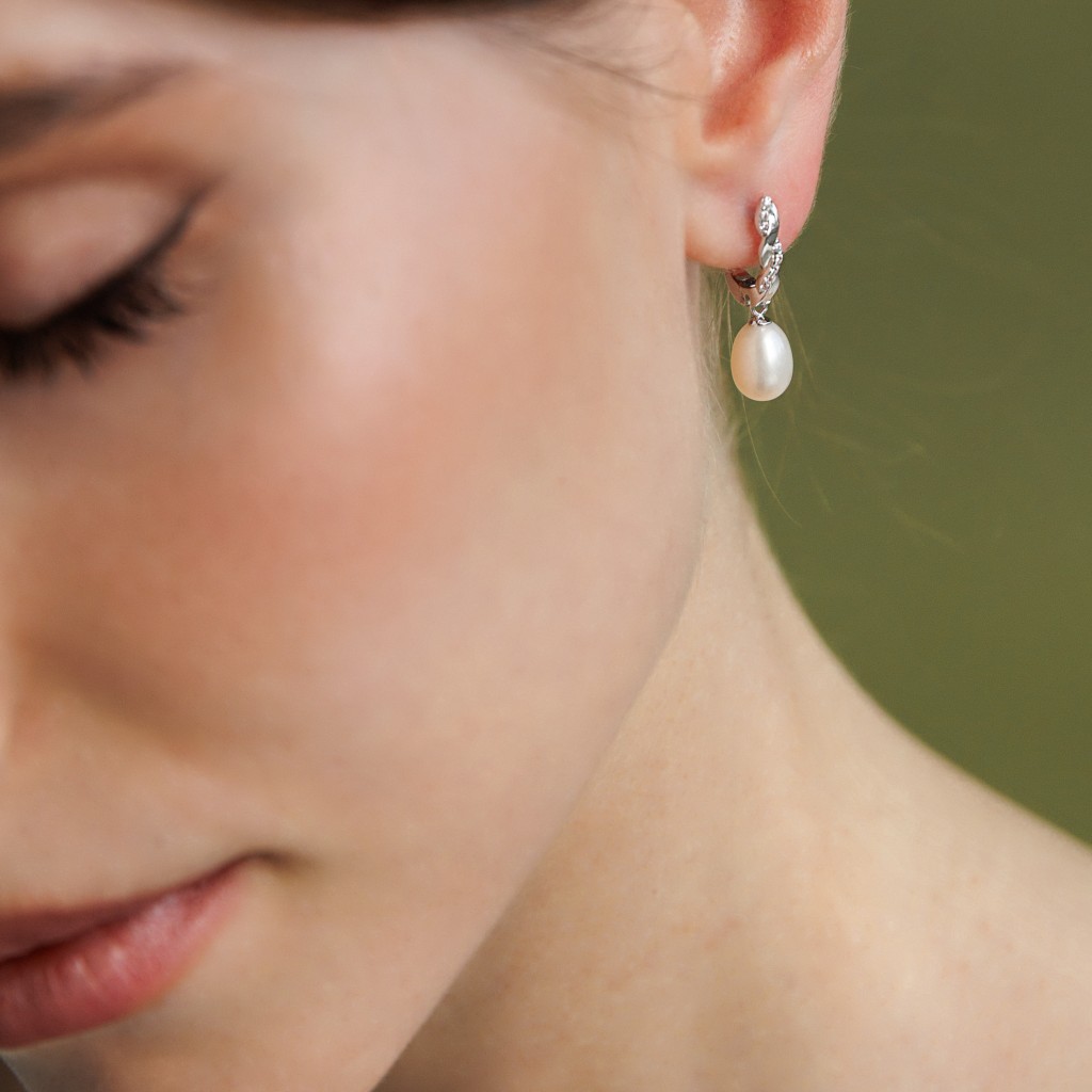 Hõbekõrvarõngad pärlite ja tsirkoonidega