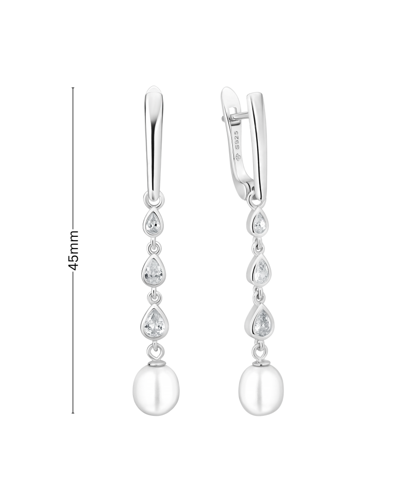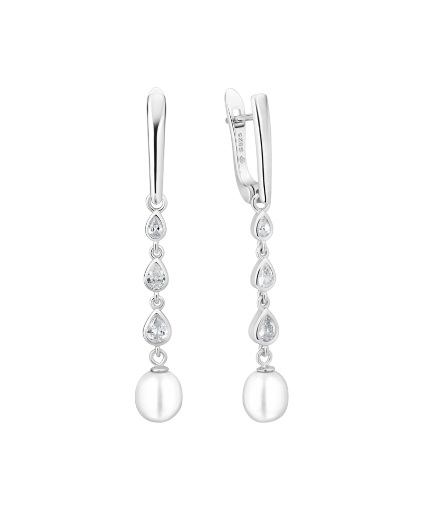 Hõbekõrvarõngad pärlite ja tsirkoonidega
