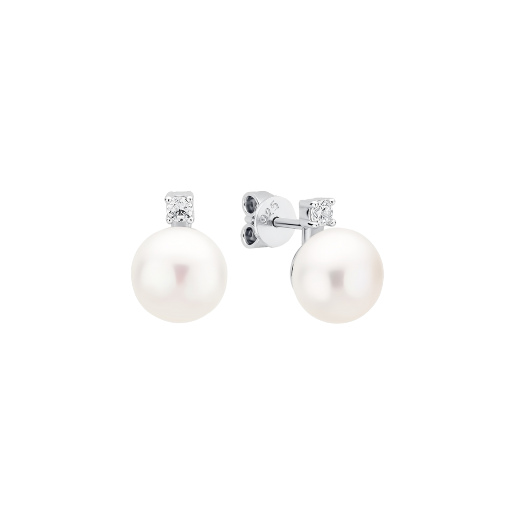 Hõbekõrvarõngad pärlite ja tsirkoonidega