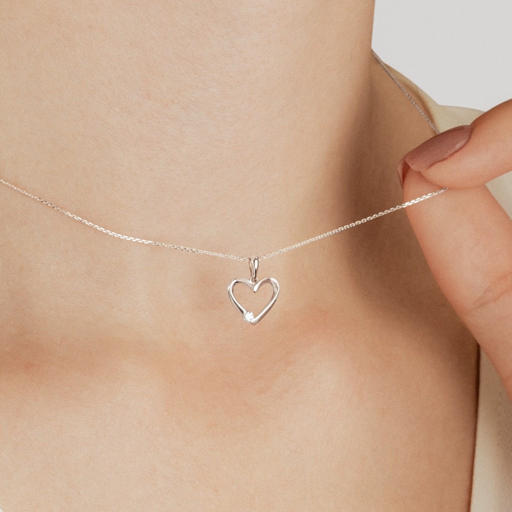 Valgest kullast ripats teemantidega "Süda"