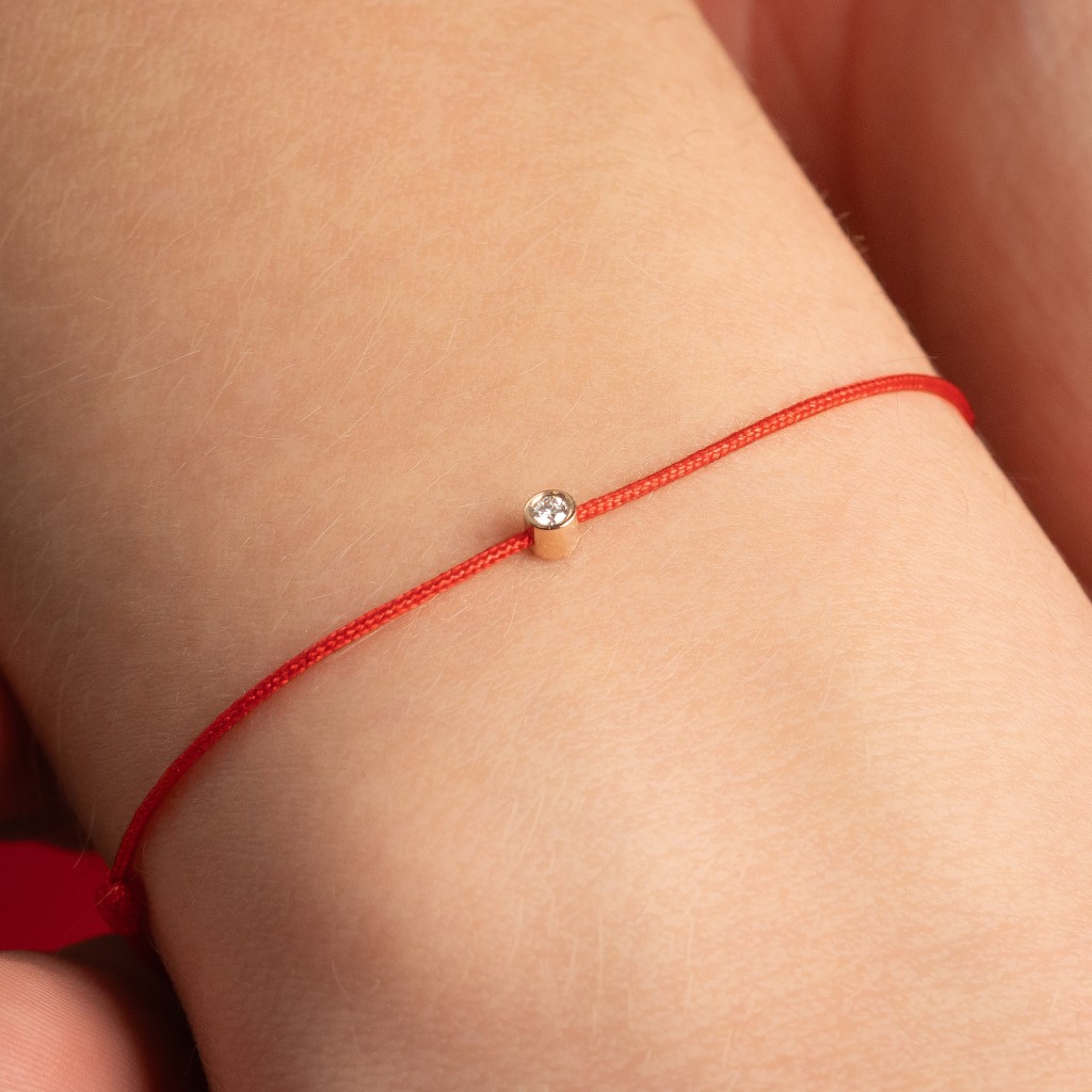Браслет из красной нити с подвеской из золота и бриллиантами 0.03ct