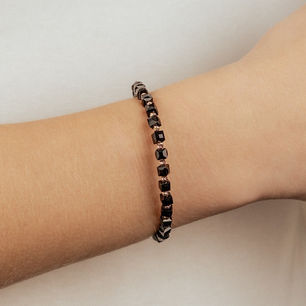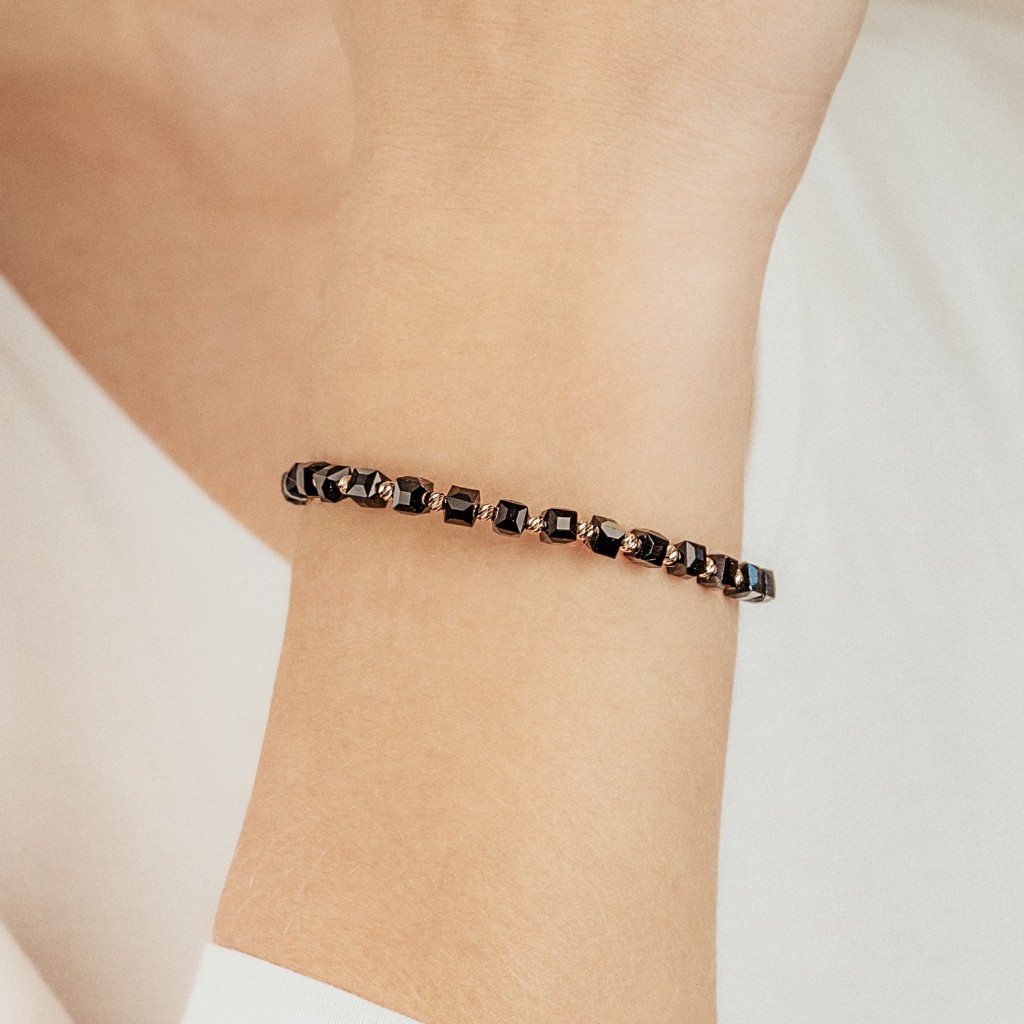 Браслет из чёрной нити с золотом и ониксами