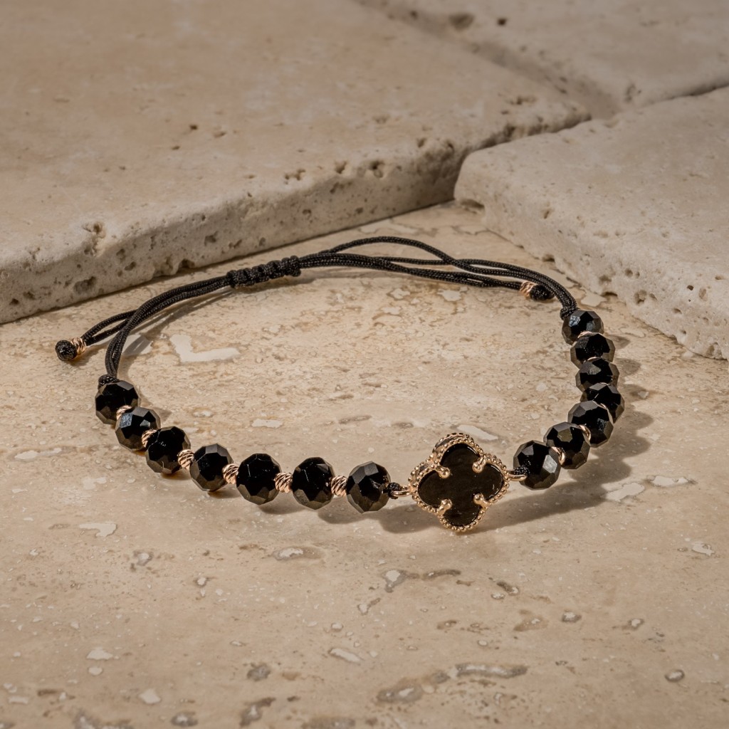 Браслет из чёрной нити с золотом и ониксами