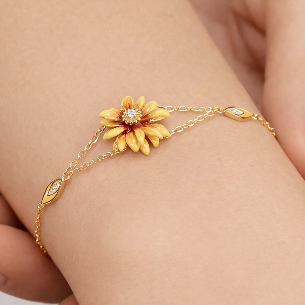 Брошь из золочёного серебра с эмалью и фианитами