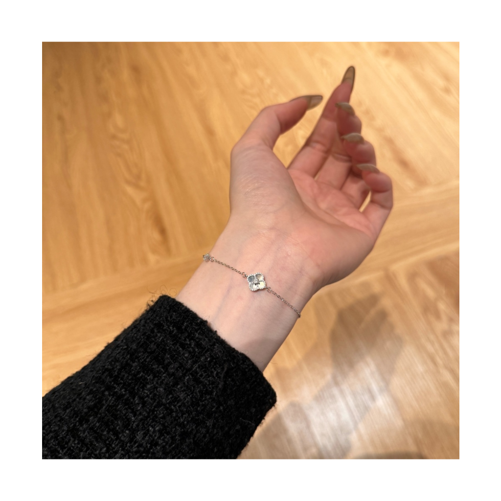 Серебряный браслет с цирконами и перламутром
