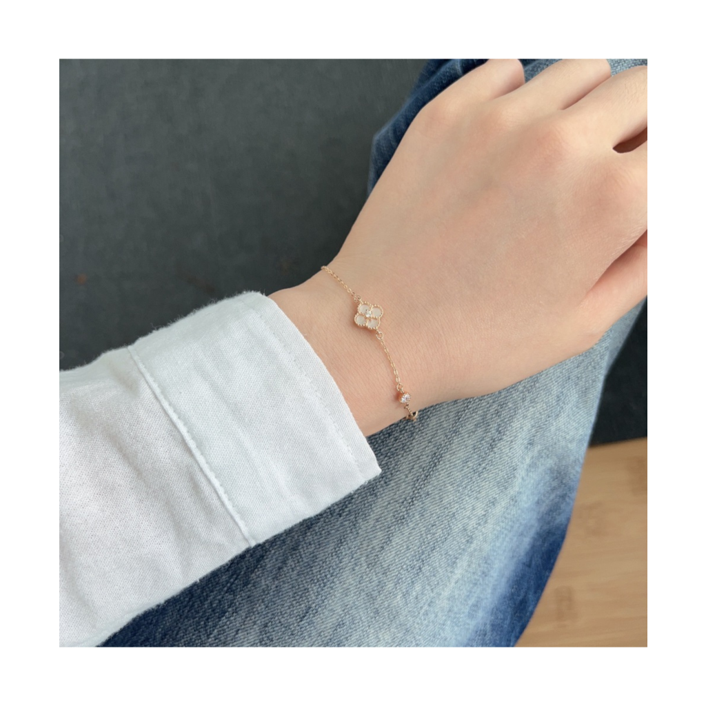 Позолоченный серебряный браслет с цирконами и перламутром