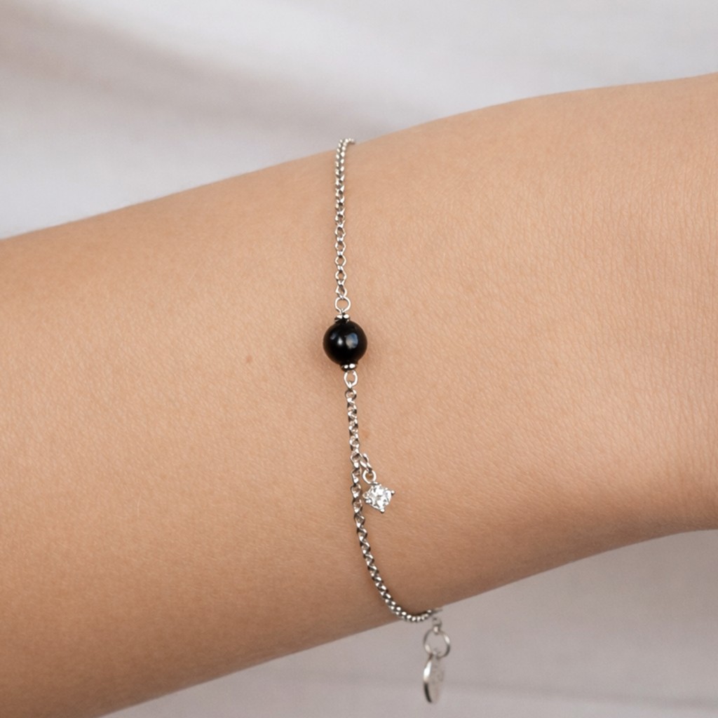 Серебряный браслет с жемчугом и цирконом