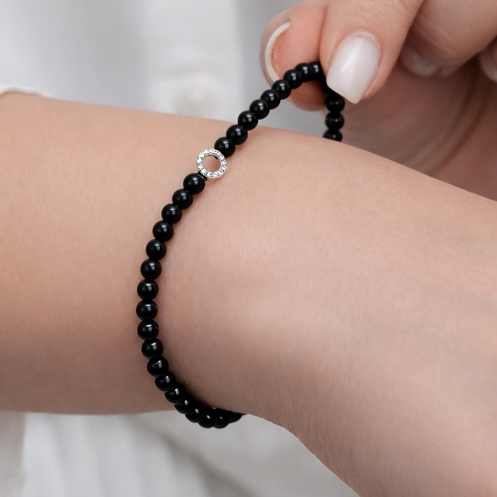 Браслет из оникса с цирконами и серебром