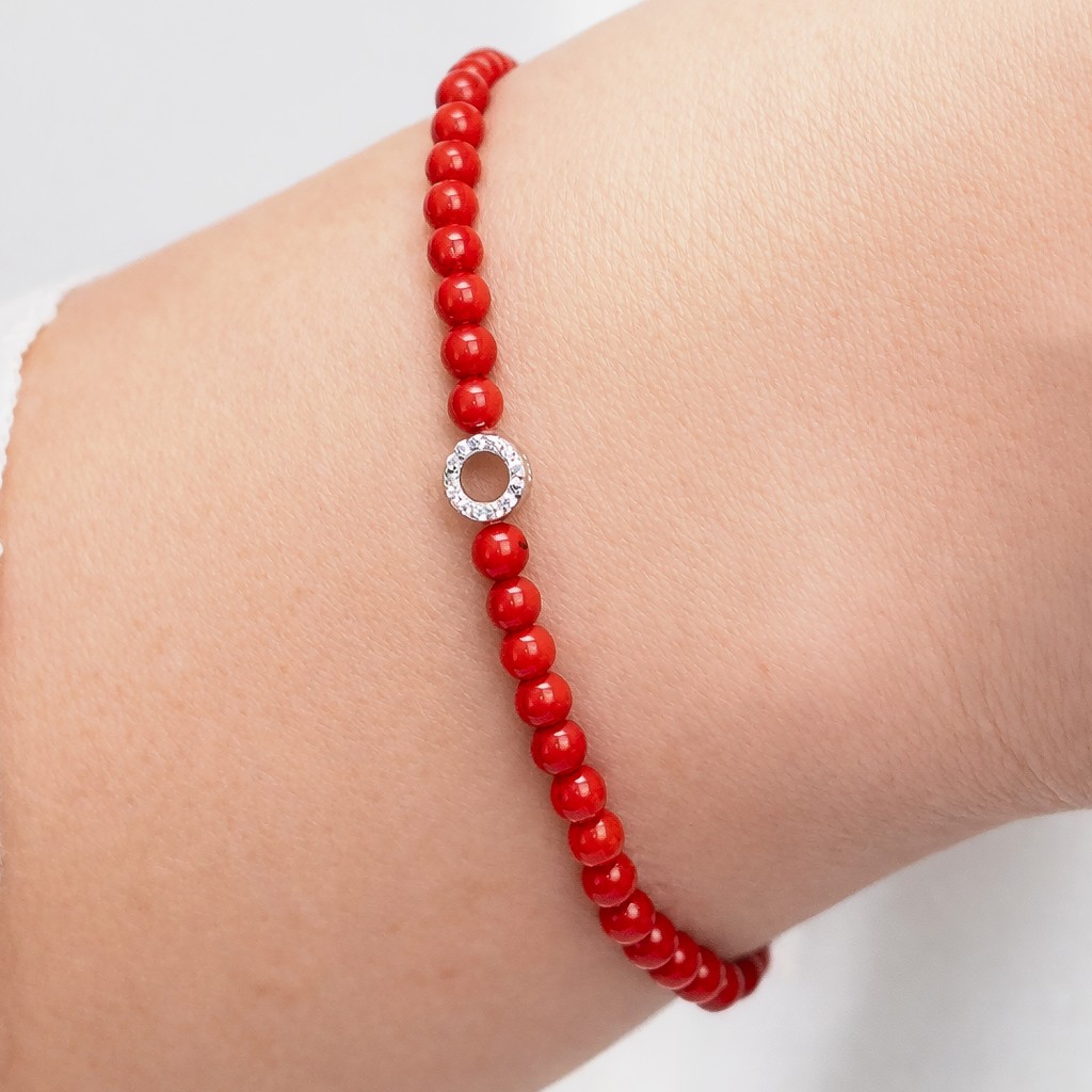 Браслет из кораллов с цирконами и серебром