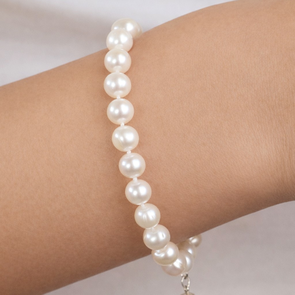 Браслет с жемчугом и серебром