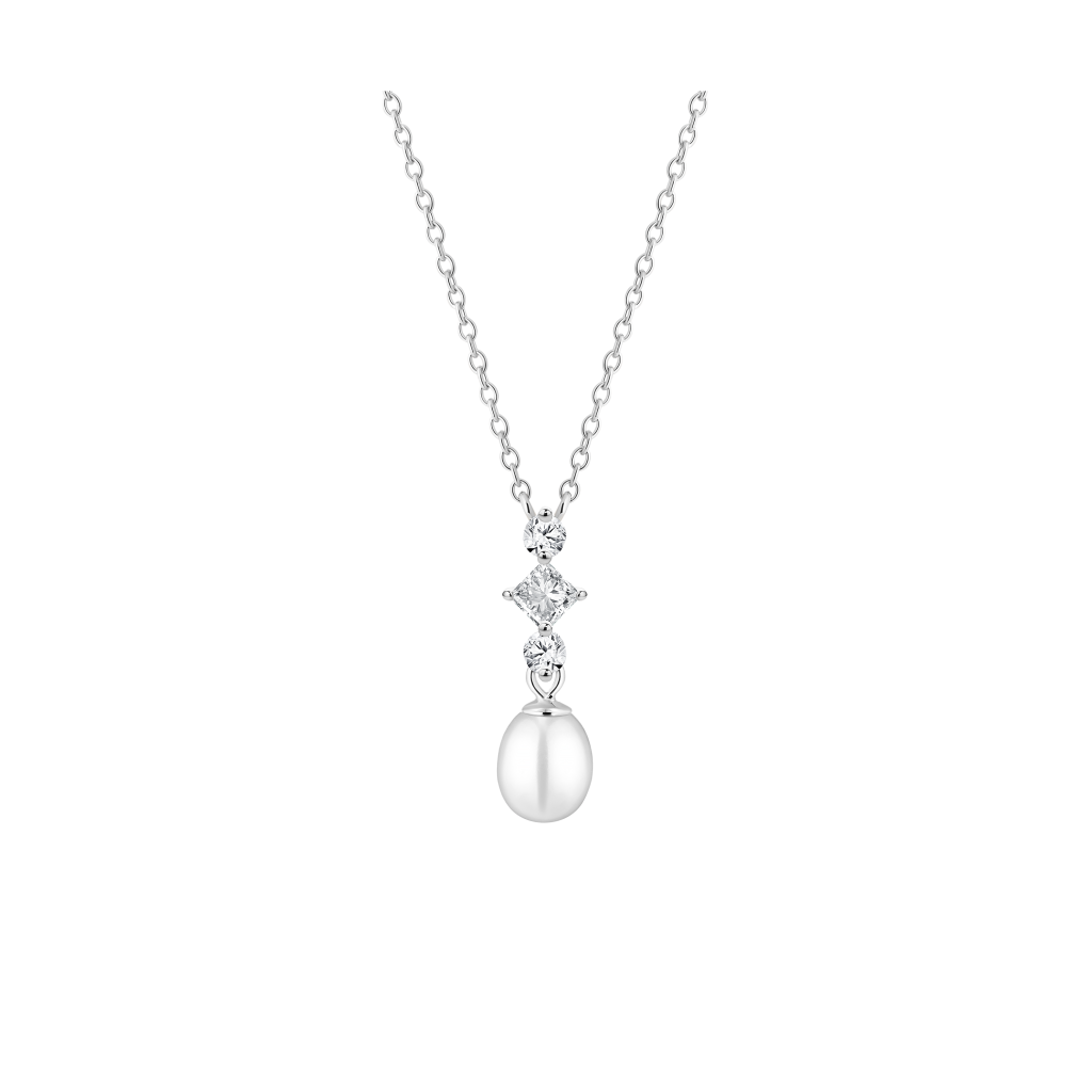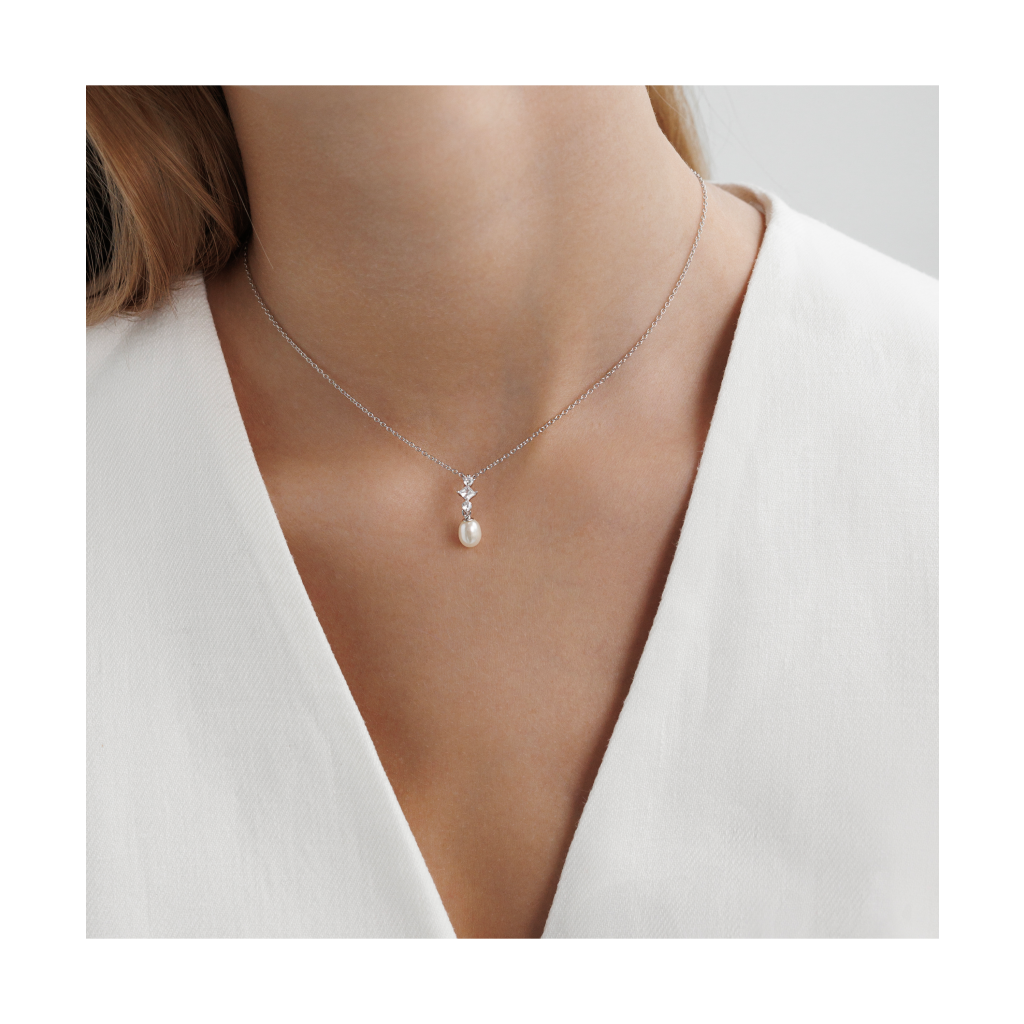 Серебряная цепочка с жемчужной подвеской и цирконами