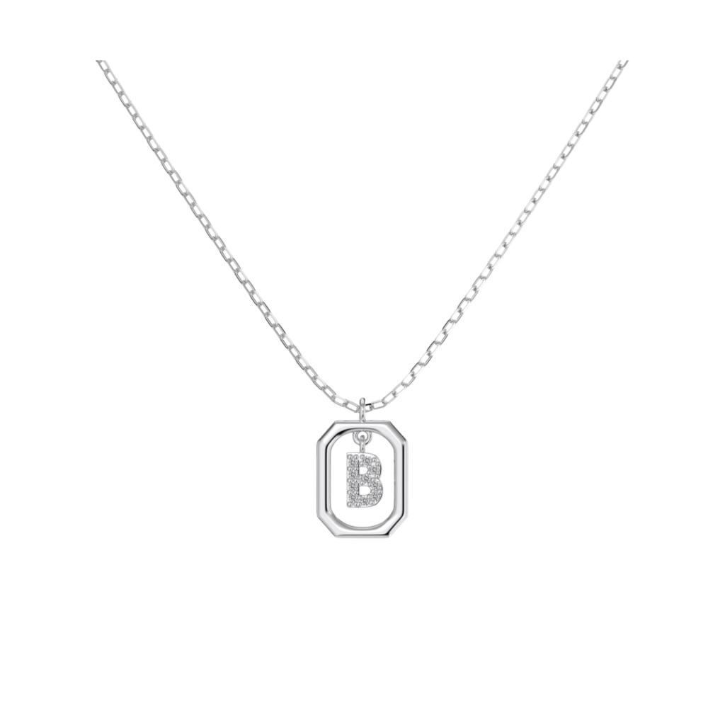 Серебряная цепочка с подвеской из циркона «Буква B»