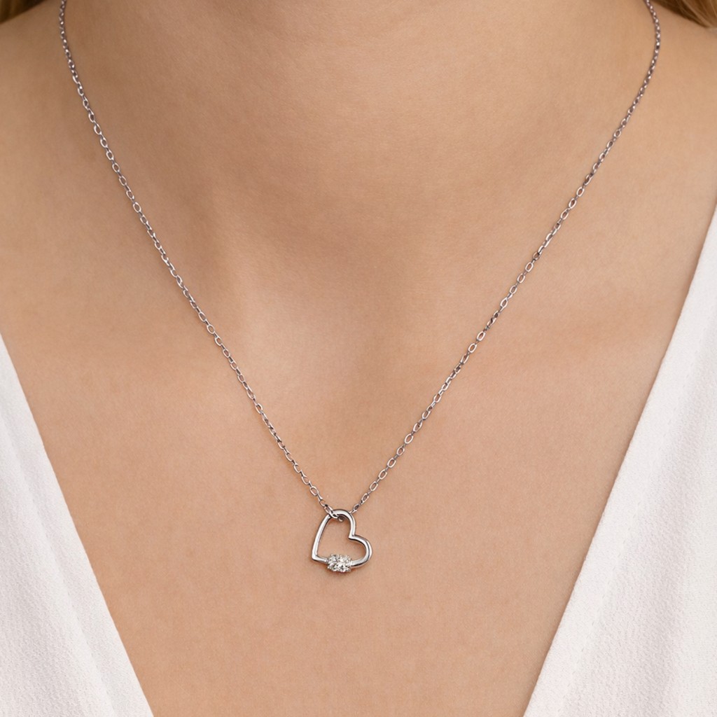 Серебряная цепочка с подвеской из циркона "Сердечко"