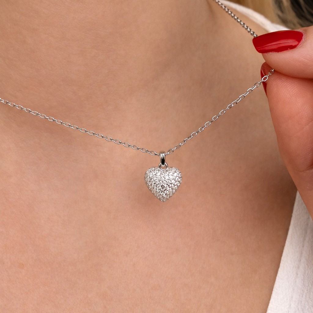 Серебряная цепочка с подвеской из циркона "Сердечко"