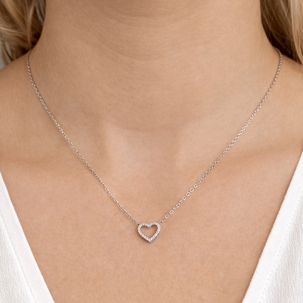 Серебряная цепочка с подвеской из циркона "Сердечко"