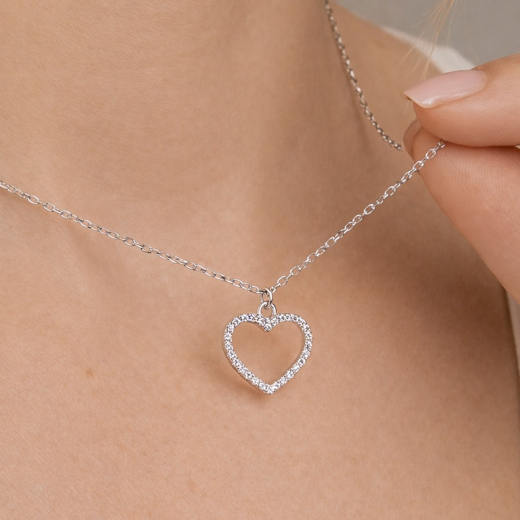 Серебряная цепочка с подвеской из циркона "Сердечко"