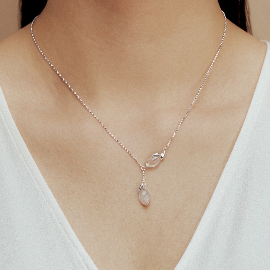 Серебряная цепочка с подвеской из розового кварца