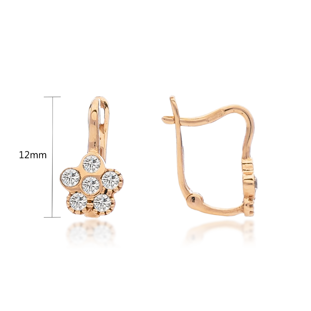 Детские золотые серьги с цирконами "Цветочки"