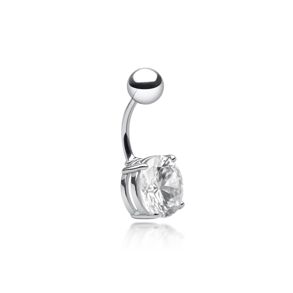 Серебряная серьга в пупок с цирконом