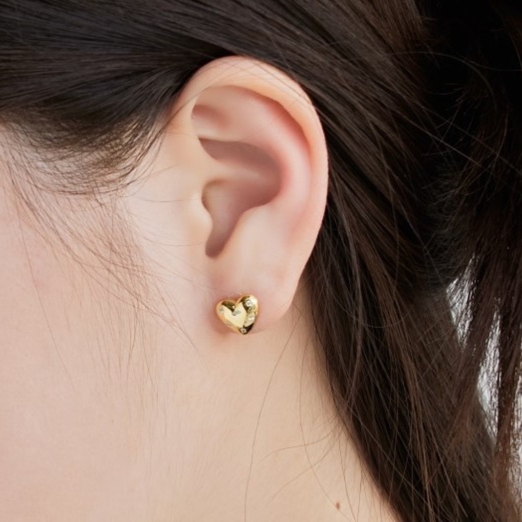 Серьги из позолоченного серебра с цирконами "Сердечки"