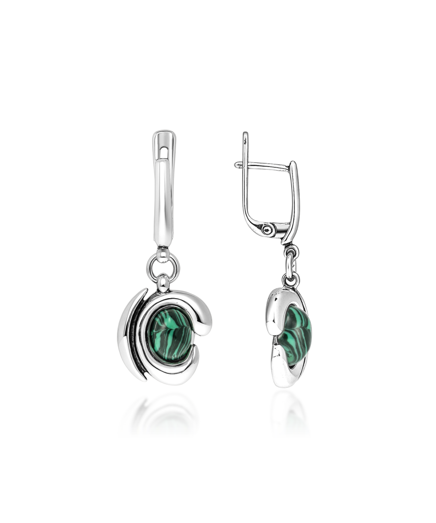 Серьги из серебра с малахитом