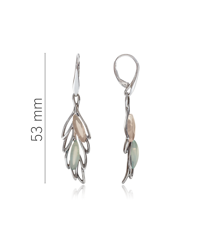 Серебряные серьги с агатом и кварцем