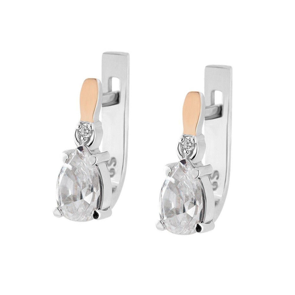 Sidabriniai auskarai su cirkoniu dengti auksu - Sidabriniai auskarai - Goldinga