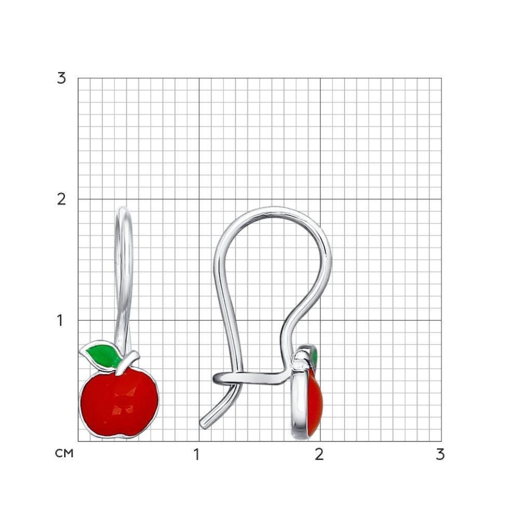 Серьги из серебра с эмалью "Яблочко"
