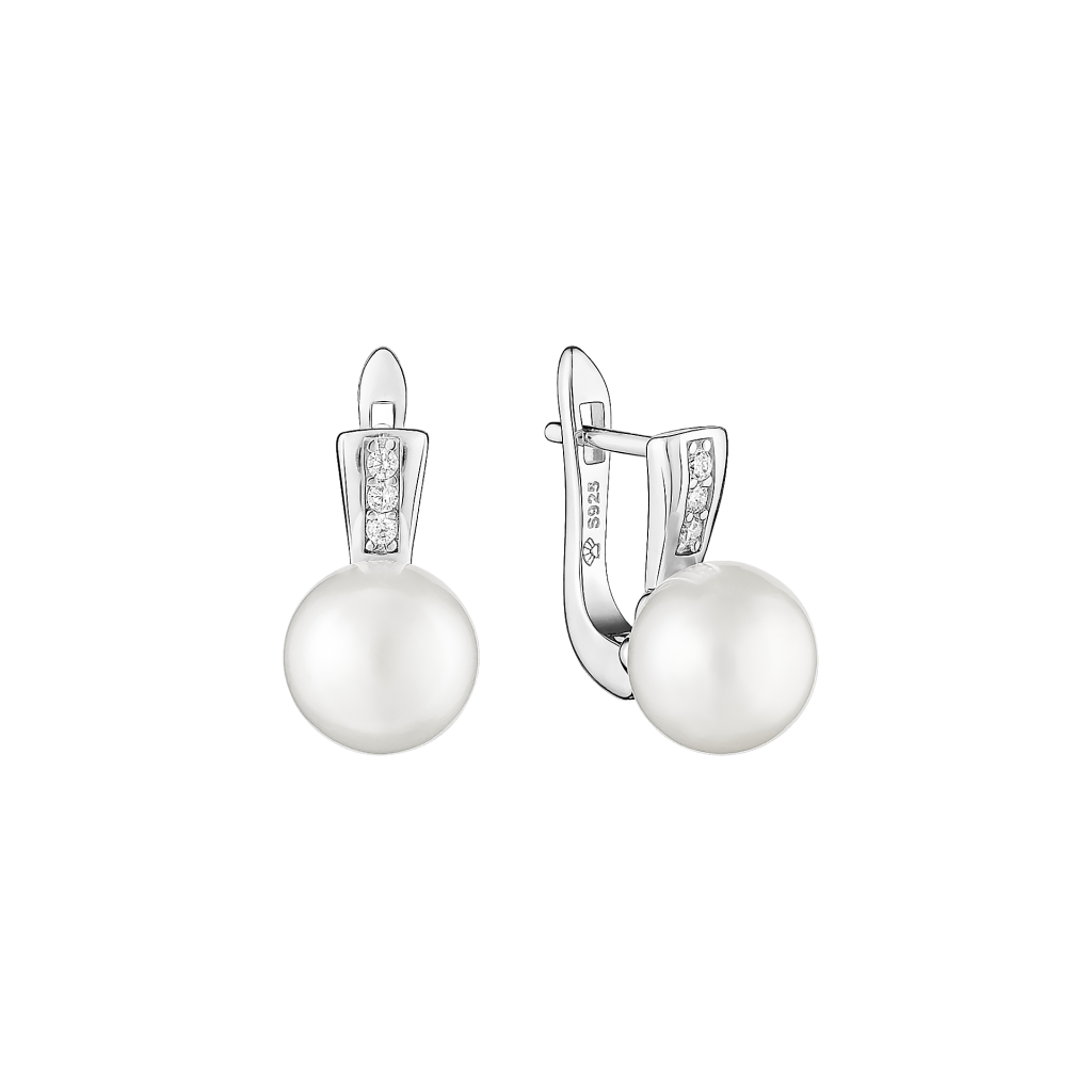 Серьги из серебра с жемчугом и цирконами