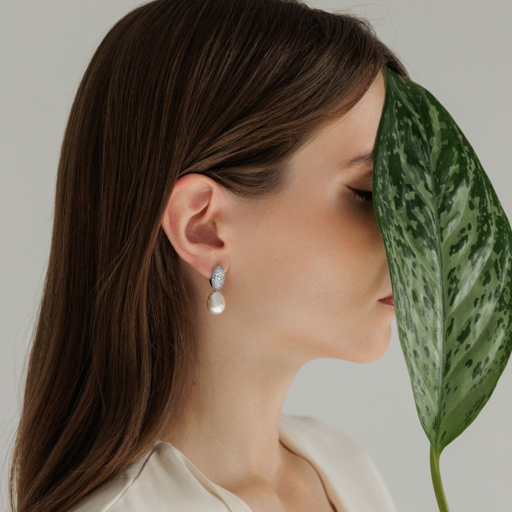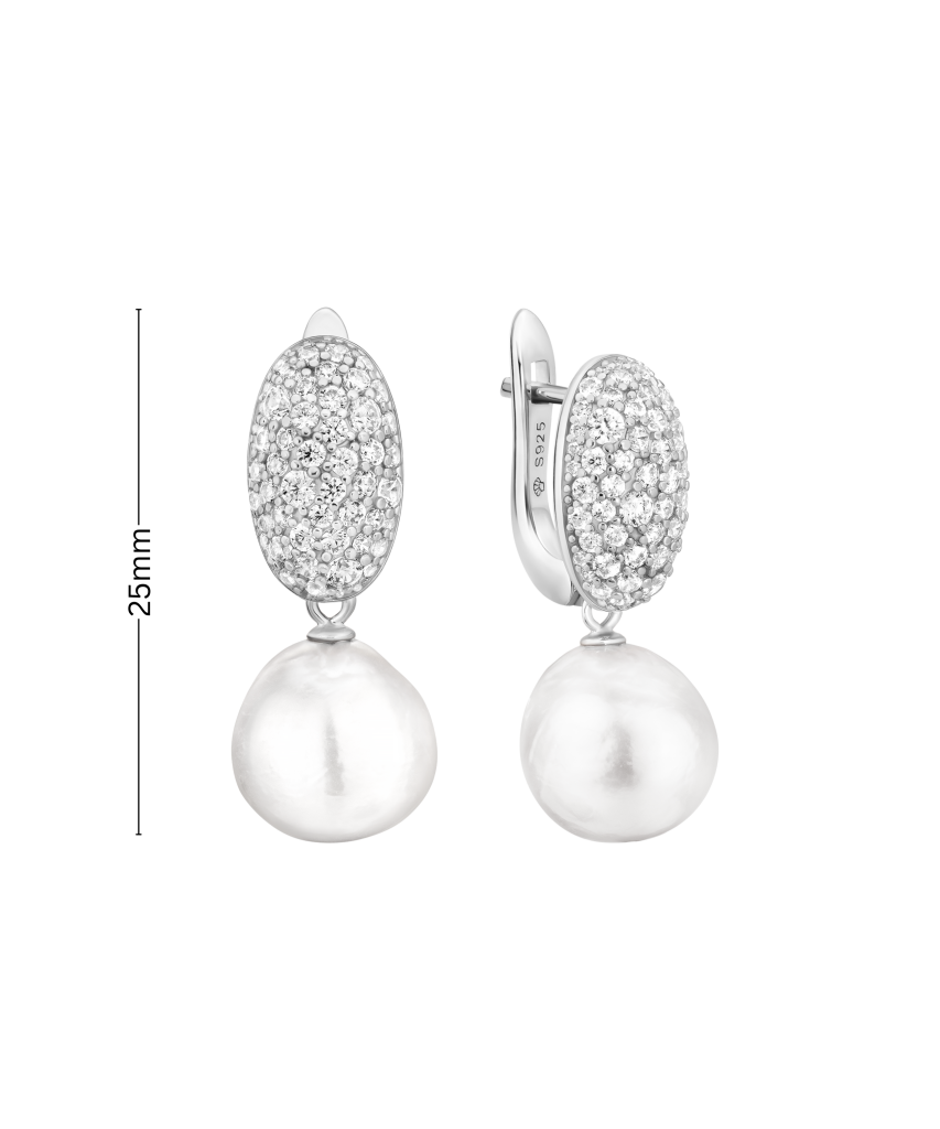 Серьги из серебра с жемчугом и цирконами