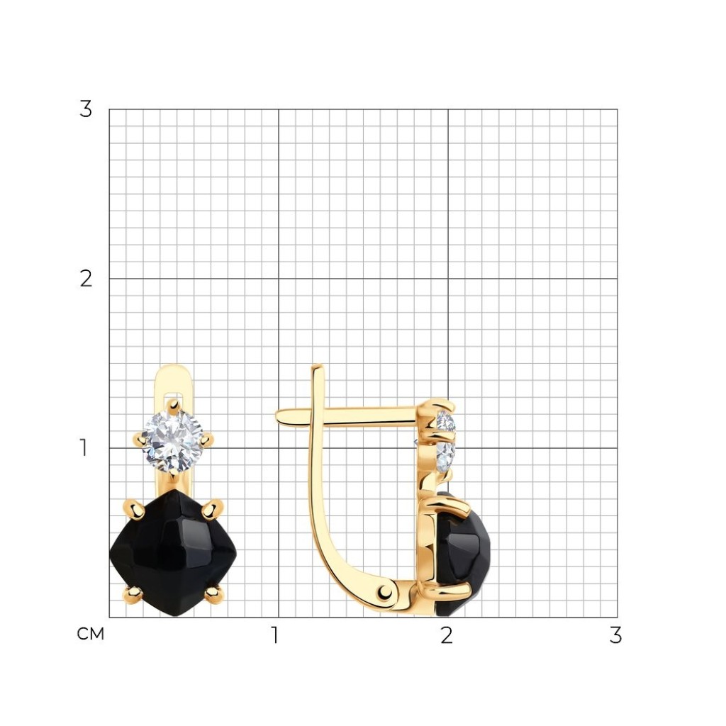 Auksiniai auskarai su juoduoju agatu ir cirkoniu - Auksiniai auskarai - Goldinga