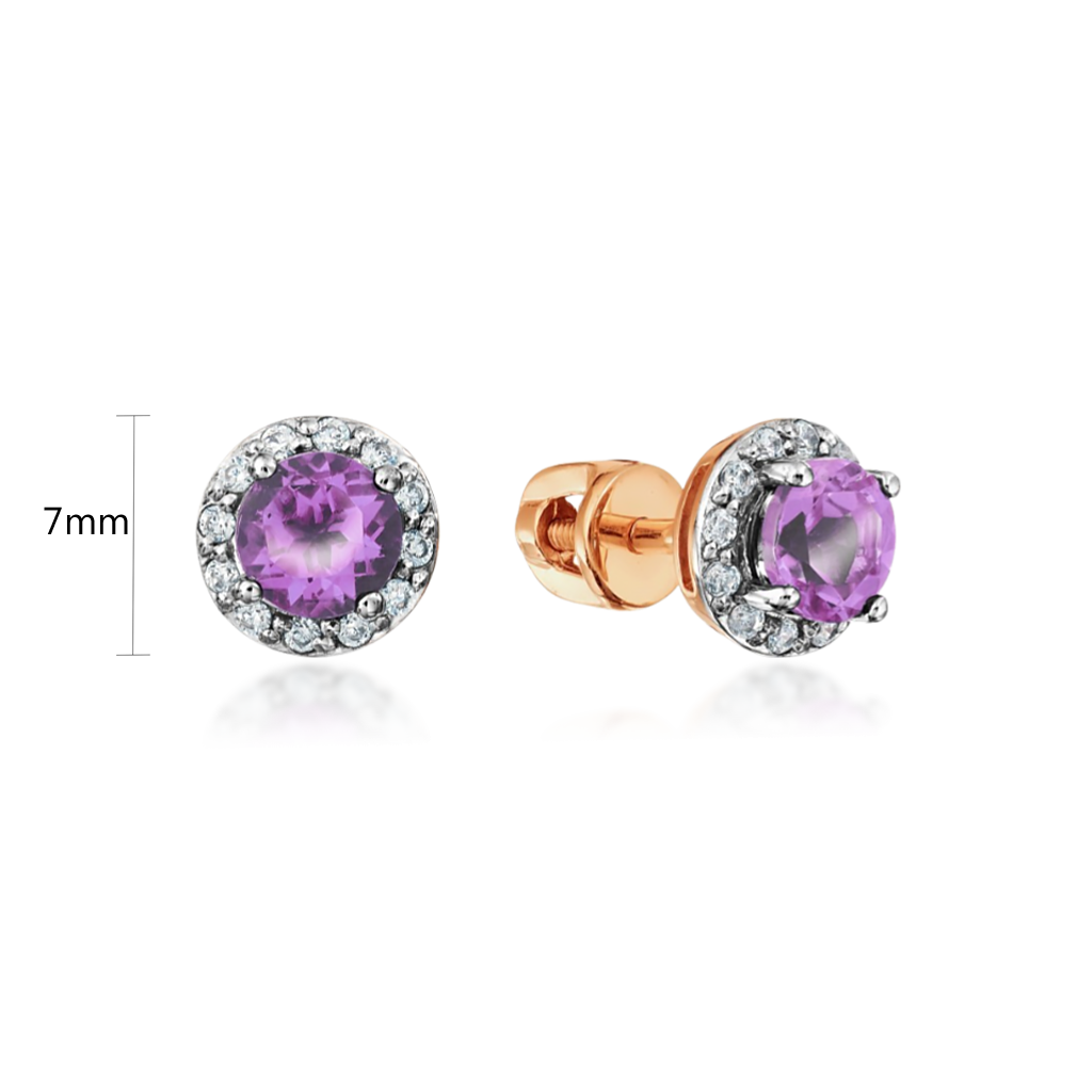 Золотые серьги с аметистами и цирконами