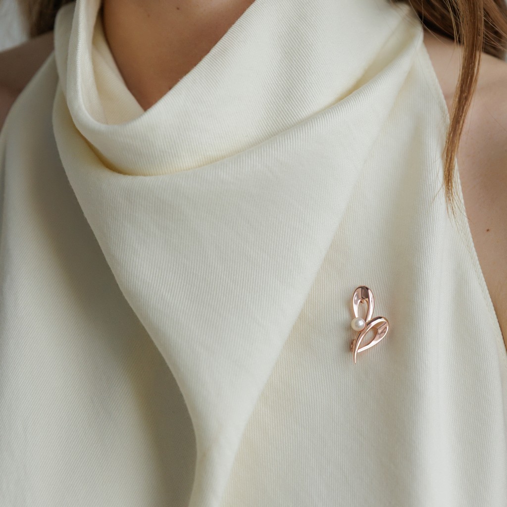 Позолоченная серебряная брошь с жемчугом