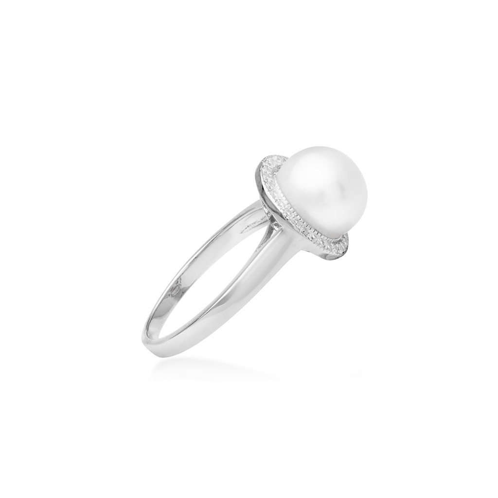 Серебряное кольцо с жемчугом и цирконами
