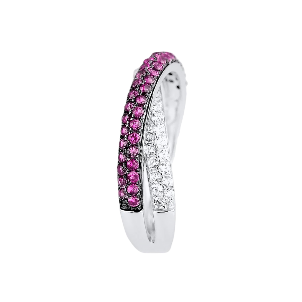 Кольцо из серебра с фианитами и нано-рубином