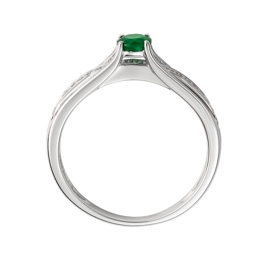 Кольцо из белого золота с изумрудом и бриллиантами
