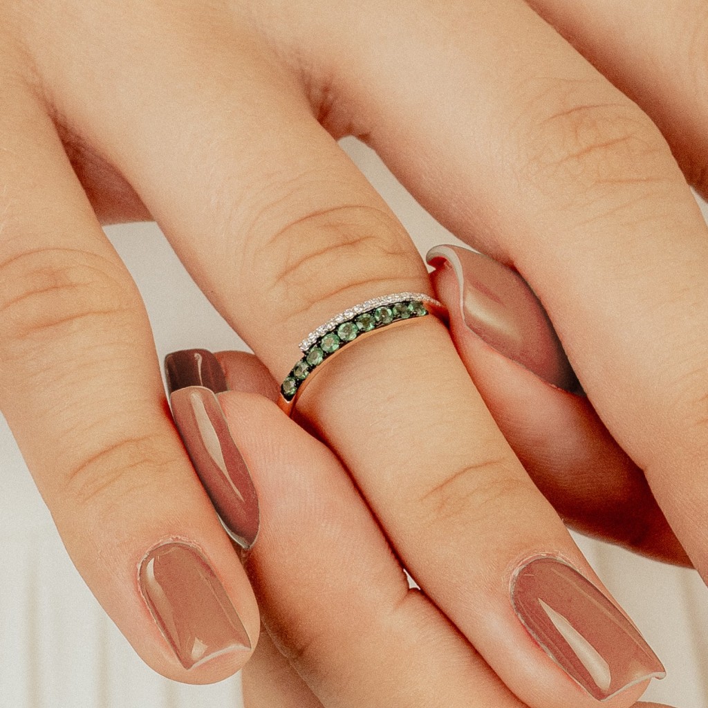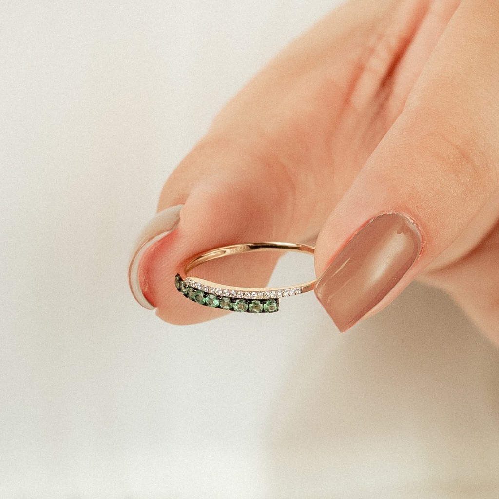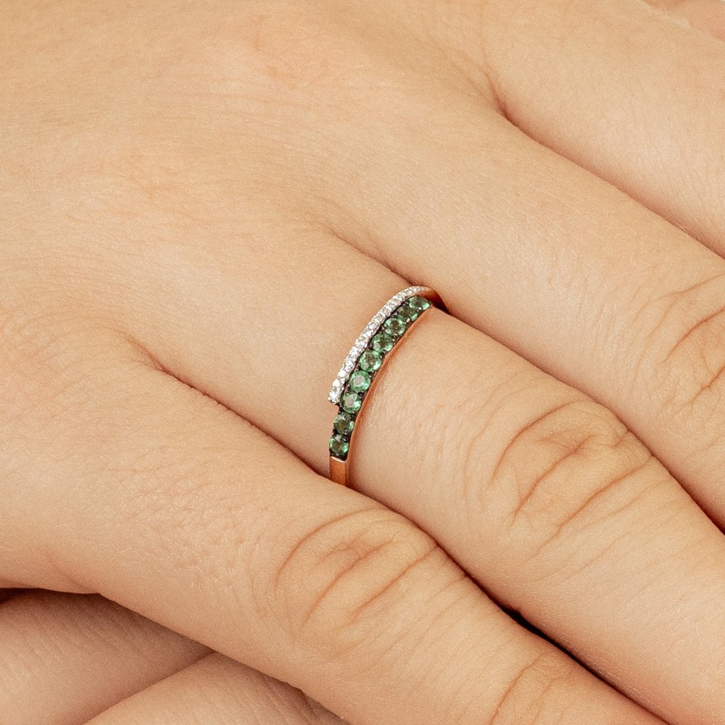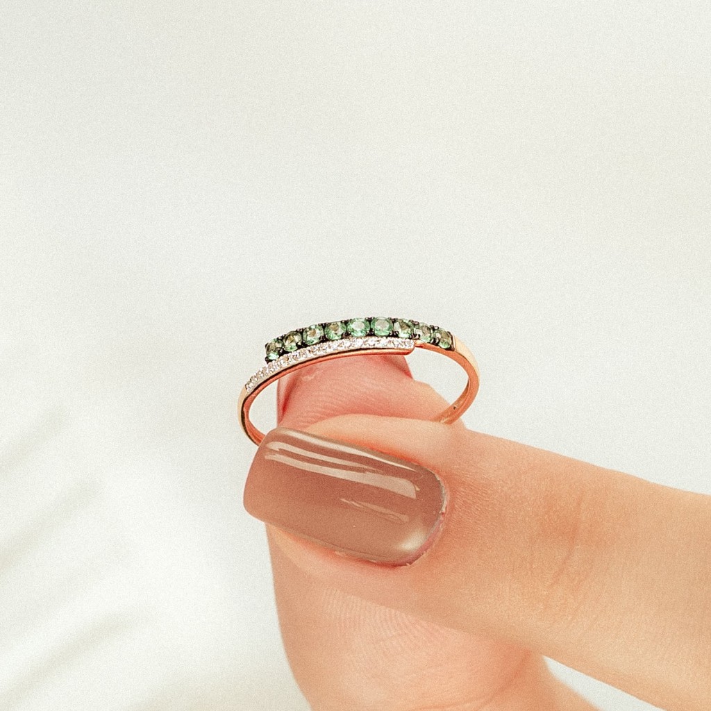 Золотое кольцо изумрудами и бриллиантами